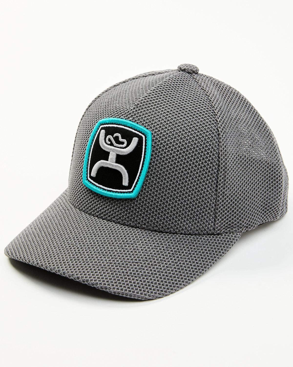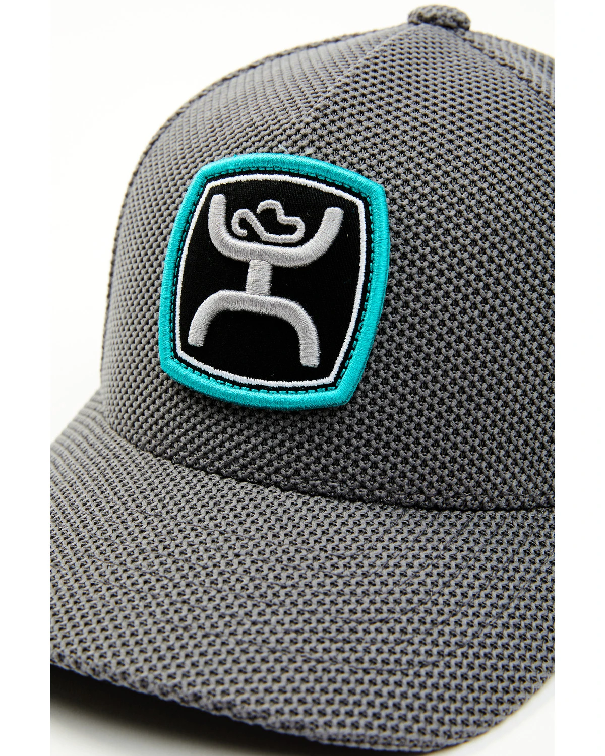 - White, black and turquoise logo patch on front