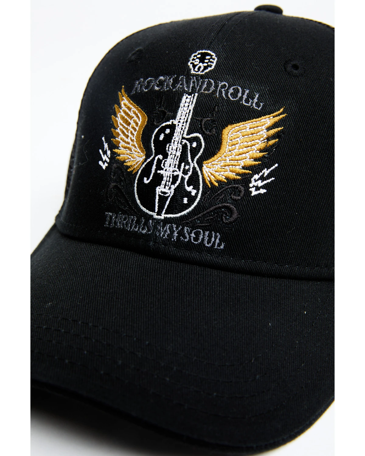 - “Rock & Roll Thrill My Soul” with embroidered guitar and wings on front panel