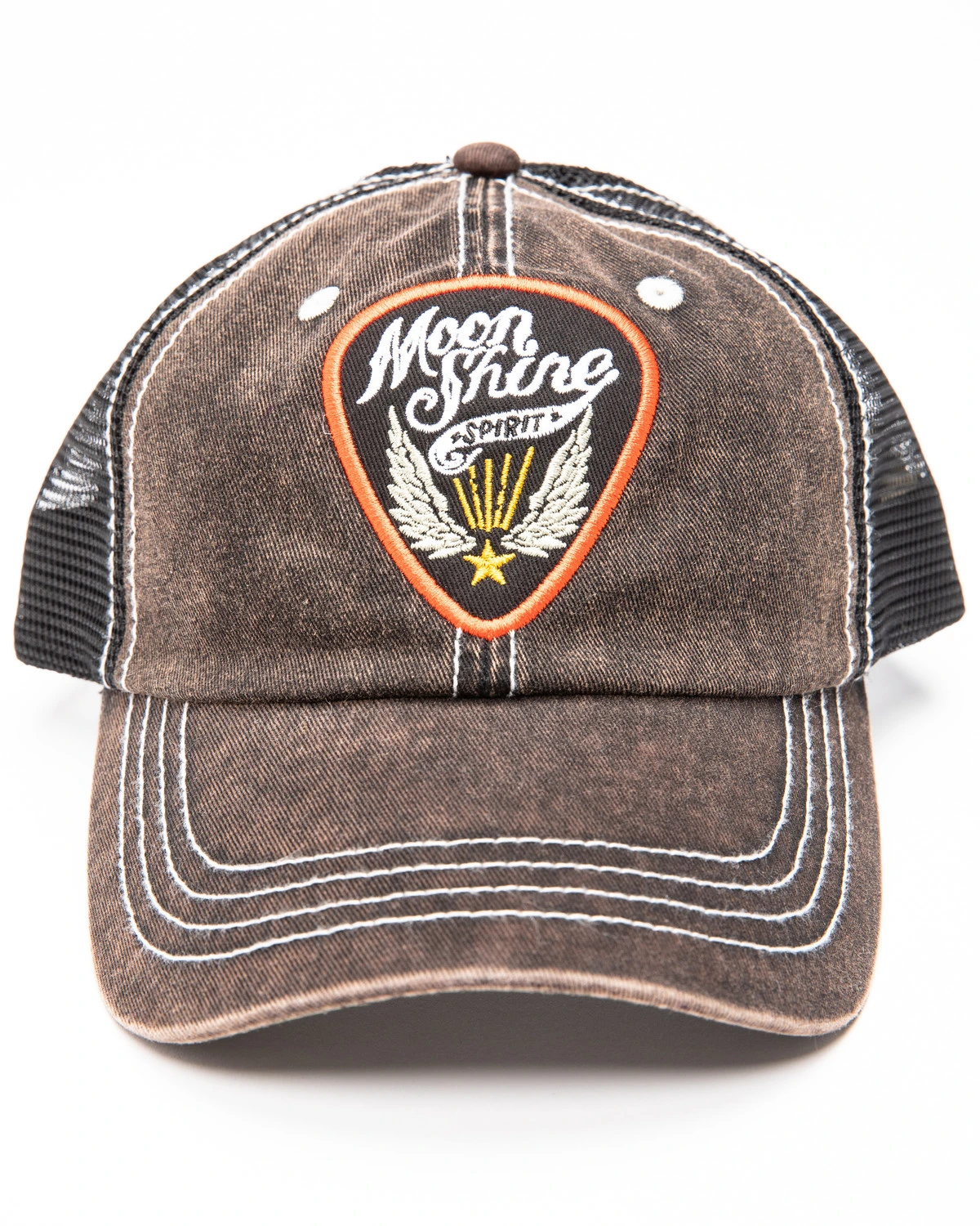 - “Moonshine Spirit” logo guitar pick patch on the front