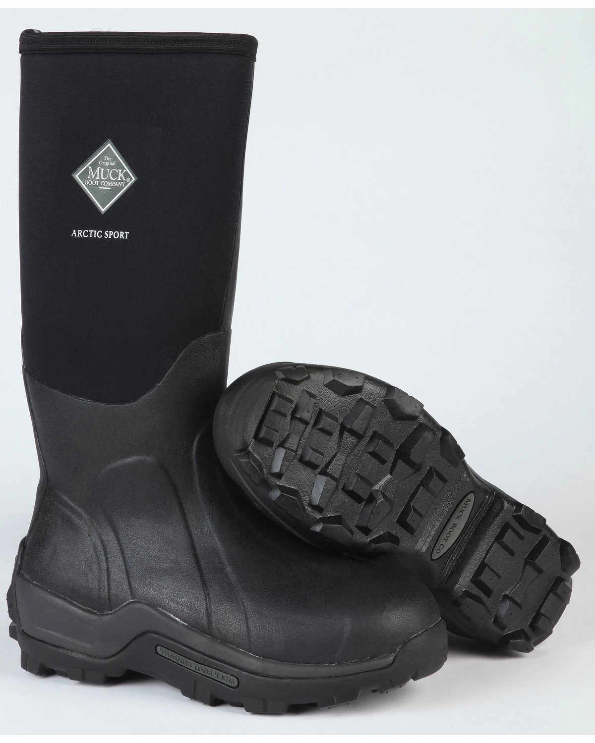 Rugged footwear from Muck Boots will keep your feet “Beyond Waterproof.” Made from waterproof rubber construction, these Men’s Arctic Sport Hi Boots offer top-notch protection and comfort, thanks to cozy fleece lining, 2mm of thermal foam under the footbed and a double reinforced heel, instep and Achilles. With Muck boots, even the snowiest trail will never hold you back from looking great.
