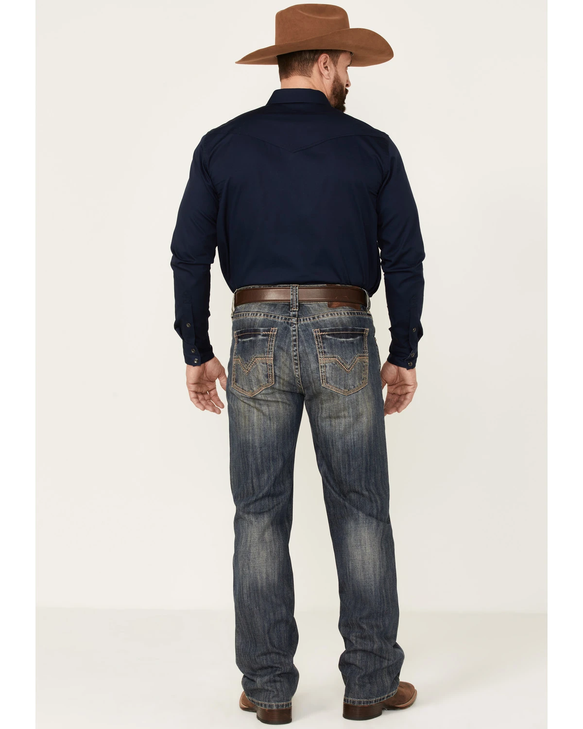- Khaki “V” stitching detail on back pockets