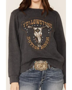 Paramount Network’s Yellowstone Women’s Charcoal Mineral Wash Steerhead Graphic Raglan Sweatshirt